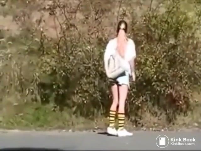 Sexy public shit girl messing her pants in the park